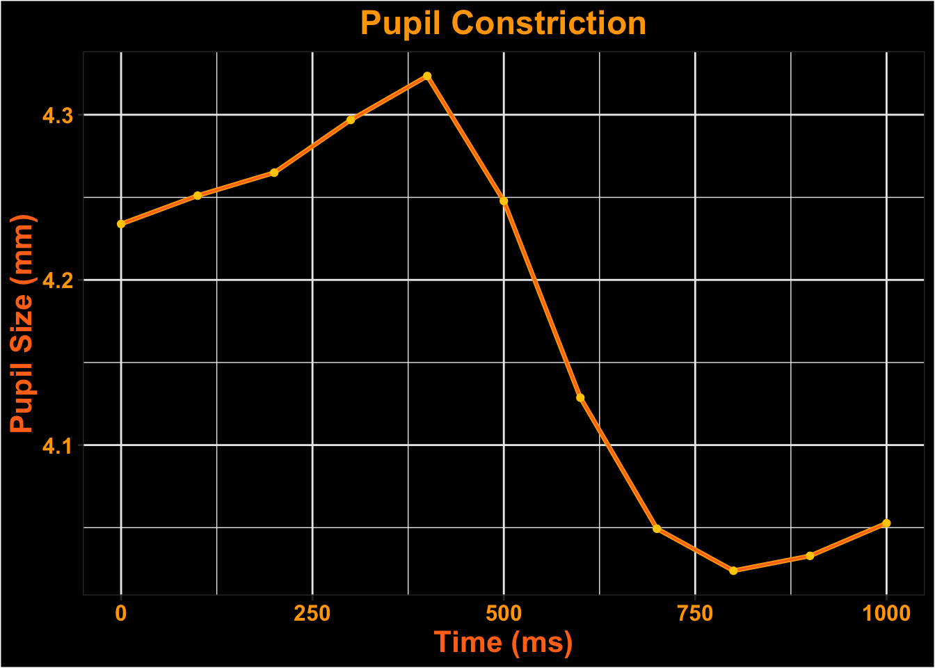 To demonstrate this, I created a simple PsychoPy experiment that interfaces seamlessly with the Neon (you can find it here: https://osf.io/txz59/overview ). In the task, participants view a bright sun for 30 seconds followed by a dark patch for another 30 seconds. The pupil responds to basic visual features like brightness—constricting in light and dilating in the dark.